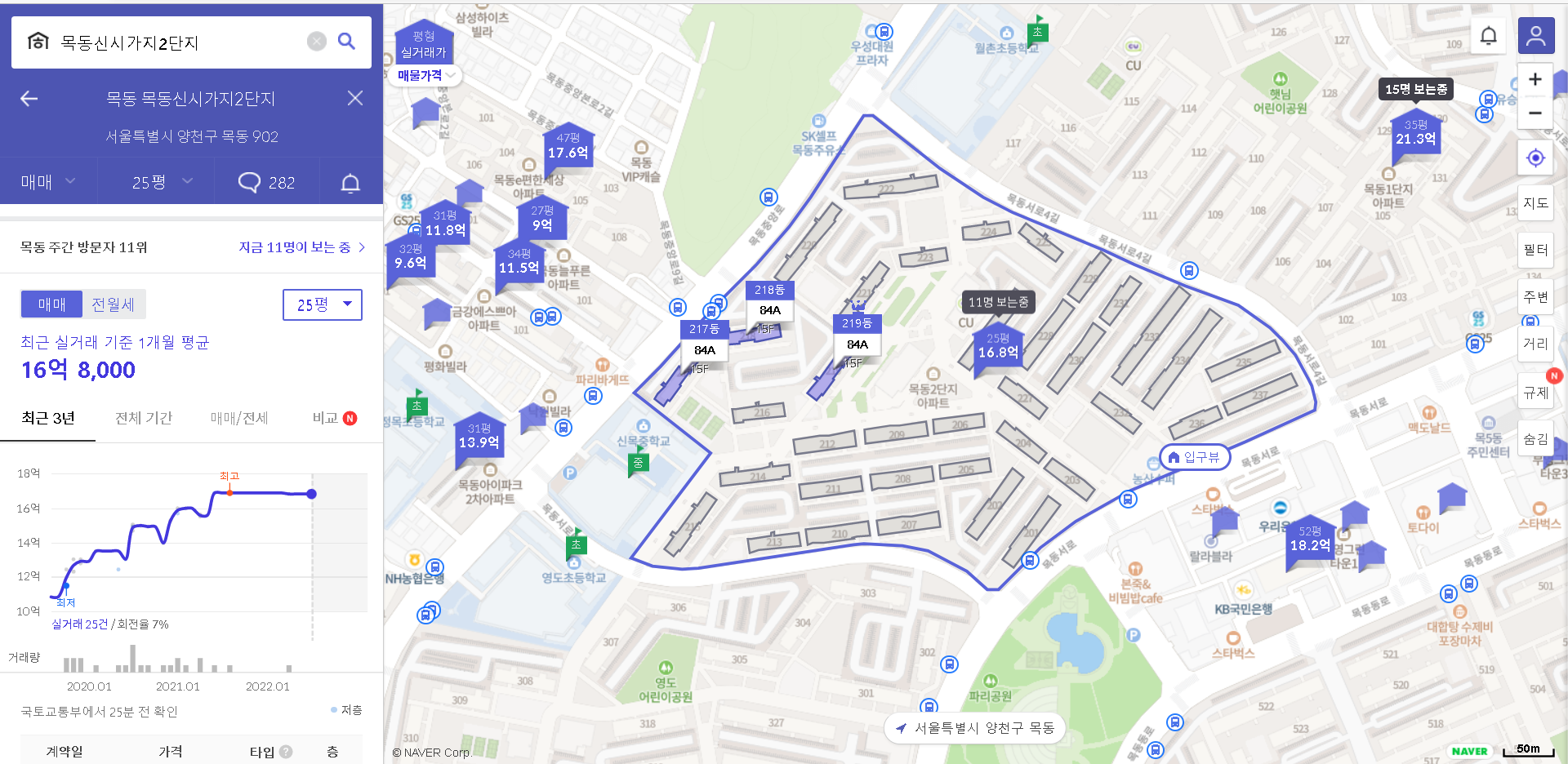 최근 거래는 25평 기준 16억 8000만원 입니다. 우상향하는 그래프를 볼 수 있고, 현재 부동산 흐름은 하락 안정기라고 하지만 목동신시가지 2단지 아파트 시세는 하락할 기미가 보이지 않는것 같네요.
