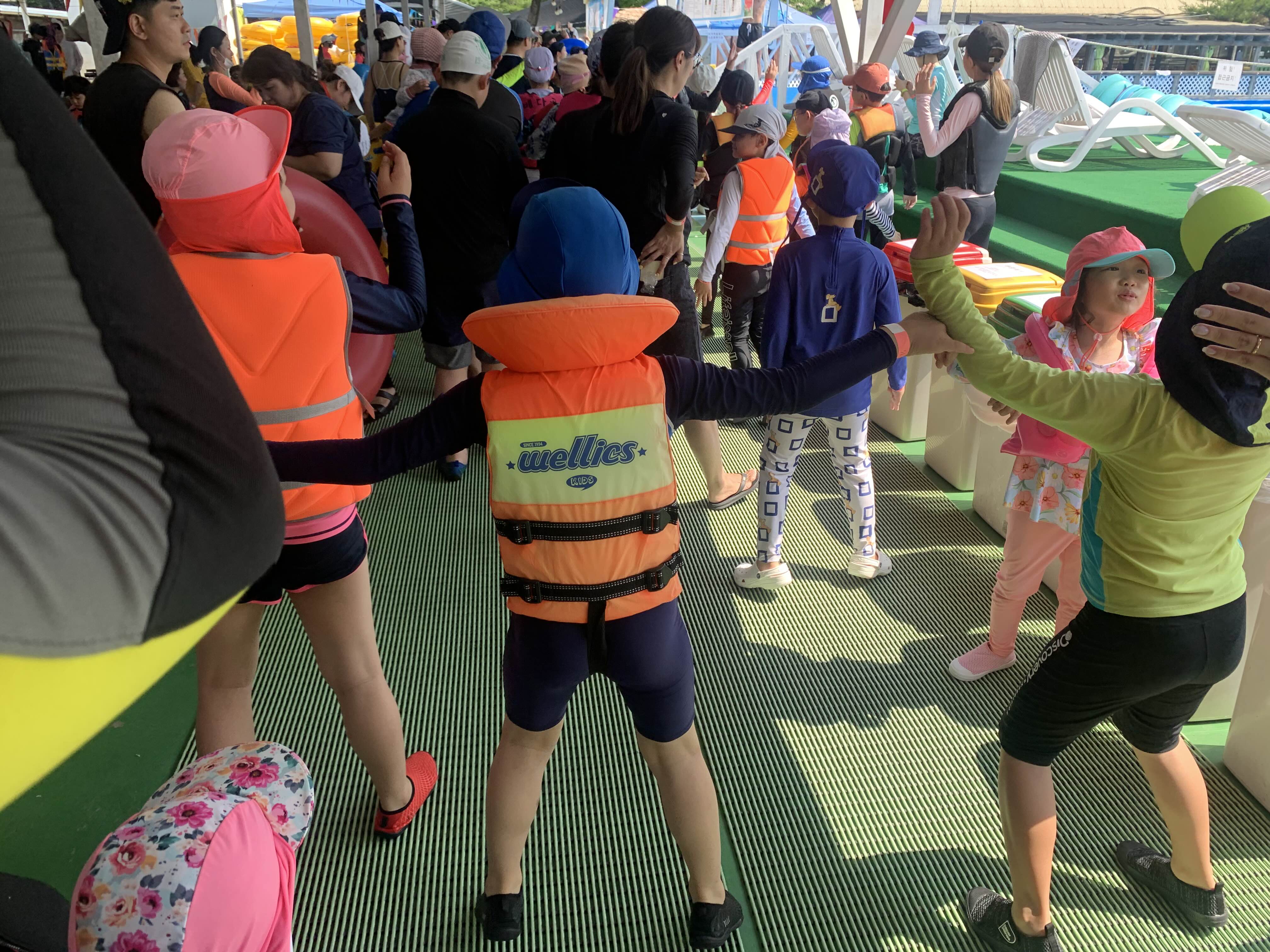10시가 되면 체조를 하고 수영장 입장을 시켜줍니다.