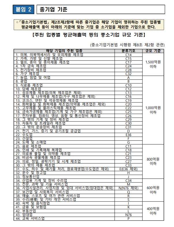 (1) 매출 규모 : 매출액이 소기업 또는 50억 원 이하 중기업에 해당되는 경우