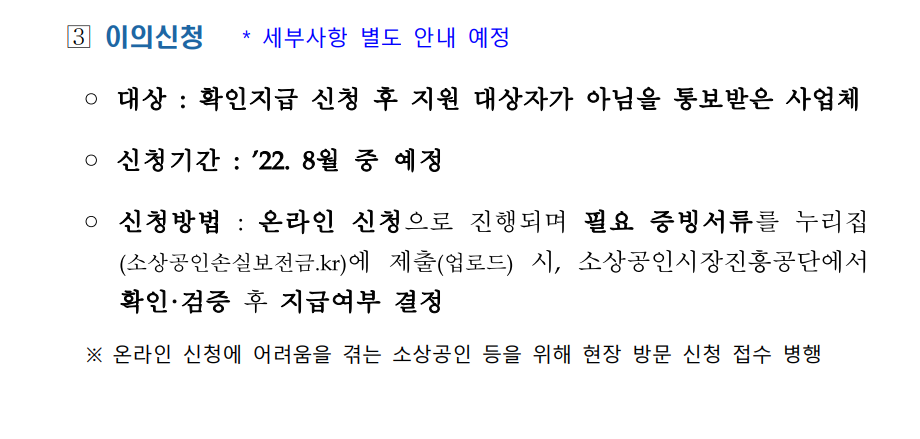(4) 이의신청 : 확인 지급 신청 후 지원대상자가 아니란 통보를 받은 경우는 8월 중 이의신청을 하시면 됩니다.