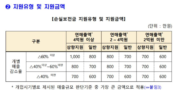 (3) 연매출액 2억 미만인 곳은 구분 없이 600~700만 원까지 지원합니다.