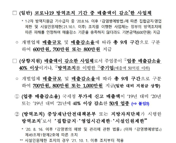 *단, 집합 금지 등 방역조치를 이행한 유흥업소는 지원대상에 포함