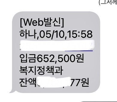동사무소에 신청 당시 3개월 정도 걸릴 거라고 했는데 정말 3개월이 다 돼가는 시점에 입금 문자가 왔습니다.